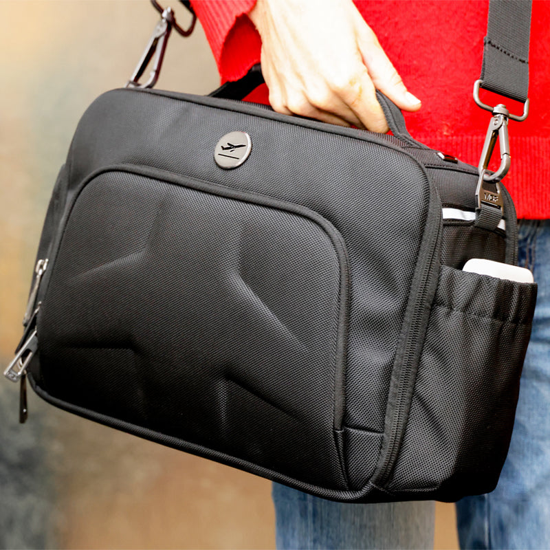The PLC Traveler, as modeled by Patty Wagstaff, American Aviator and U.S. national aerobatic champion, is the perfect flight bag for a weekend trip. With its heavy duty easy-rolling wheels, telescoping handle multiple storage compartments, and an expansion option, it has everything you need during your flight and once you reach your destination.